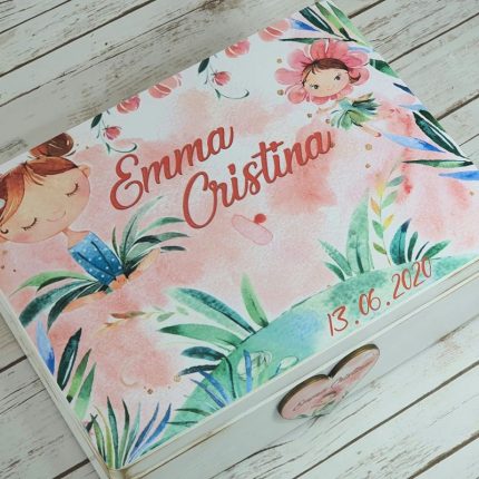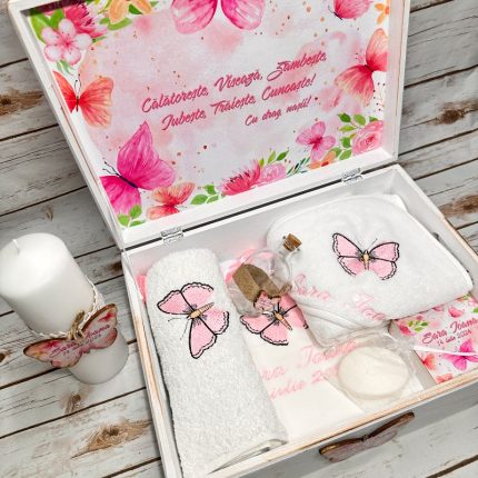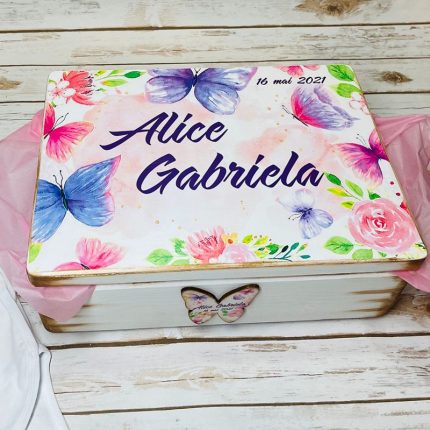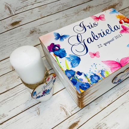 Trusou Botez Fetita Personalizat Fluturi si Flori