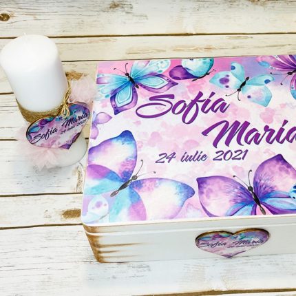 Trusou Botez Fetita Personalizat Fluturi Mov