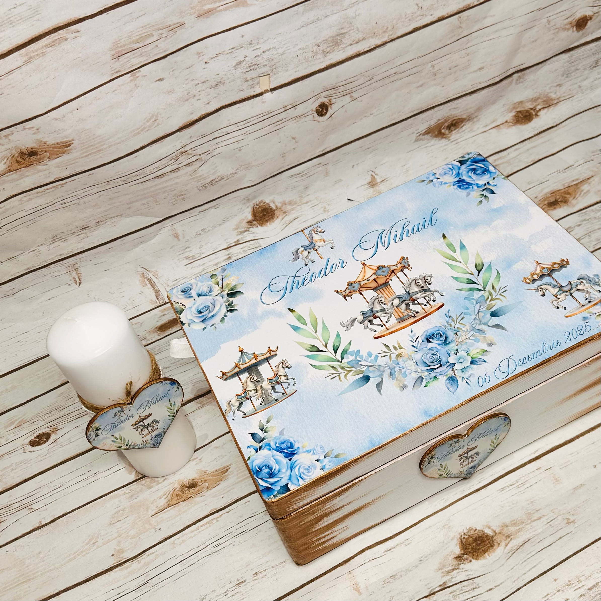 ✔️ Cutie din lemn #Carusel1 cu nume și dată